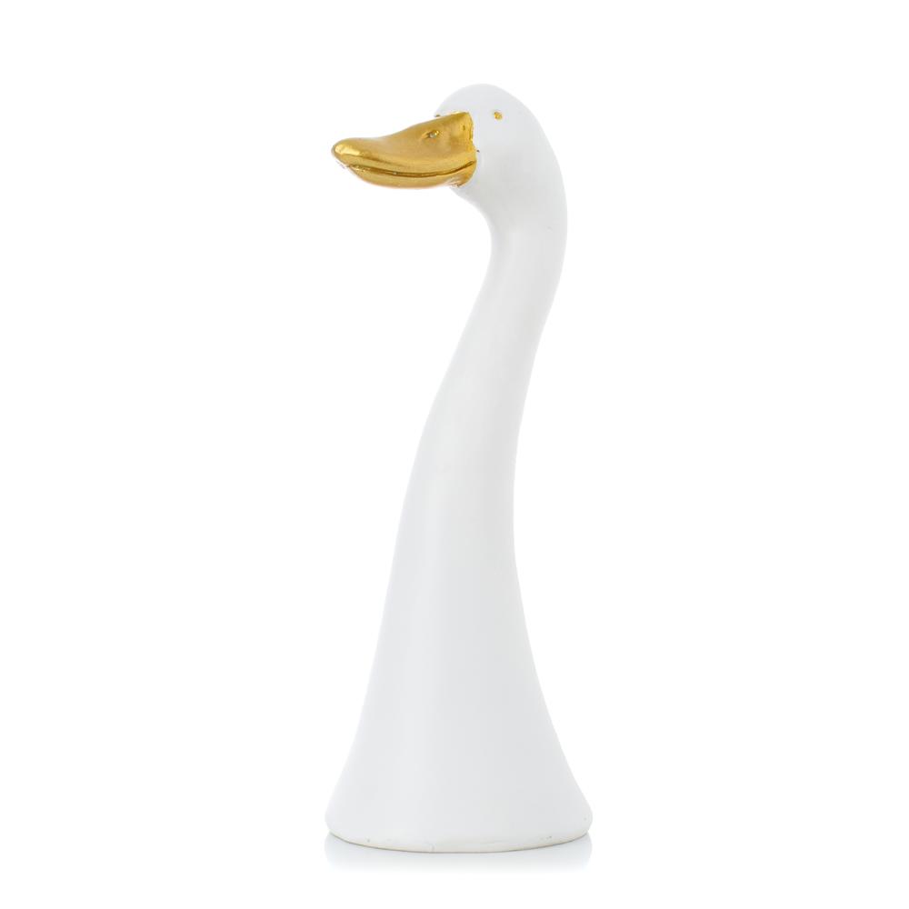 Husacia hlava je elegantný dekoratívny prvok, ktorý dodá vášmu domovu jedinečný šarm. Vyrobená z kvalitnej keramiky, má bielu farbu s zlatým zobákom, čo ju robí atraktívnou pre každú domácnosť. Ideálna na veľkonočné dekorácie alebo ako darček pre milovníkov zvierat. Jej výška a tvar sú navrhnuté tak, aby upútali pozornosť.