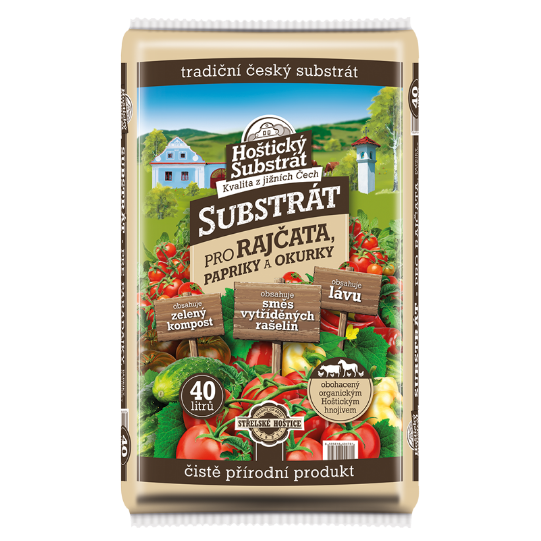 Hoštický substrát pre paradajky, papriky a uhorky je vyrobený zo zmesi vytriedené svetlé a tmavé rašeliny, kvalitného vytriedeného zeleného kompostu, lávy a organických hnojív obsahujúcich všetky hlavné živiny i stopové prvky. Substrát neobsahuje minerálne (priemyselná) hnojivá. Pôdnej reakcie je upravená jemne mletým dolomitickým vápencom.
