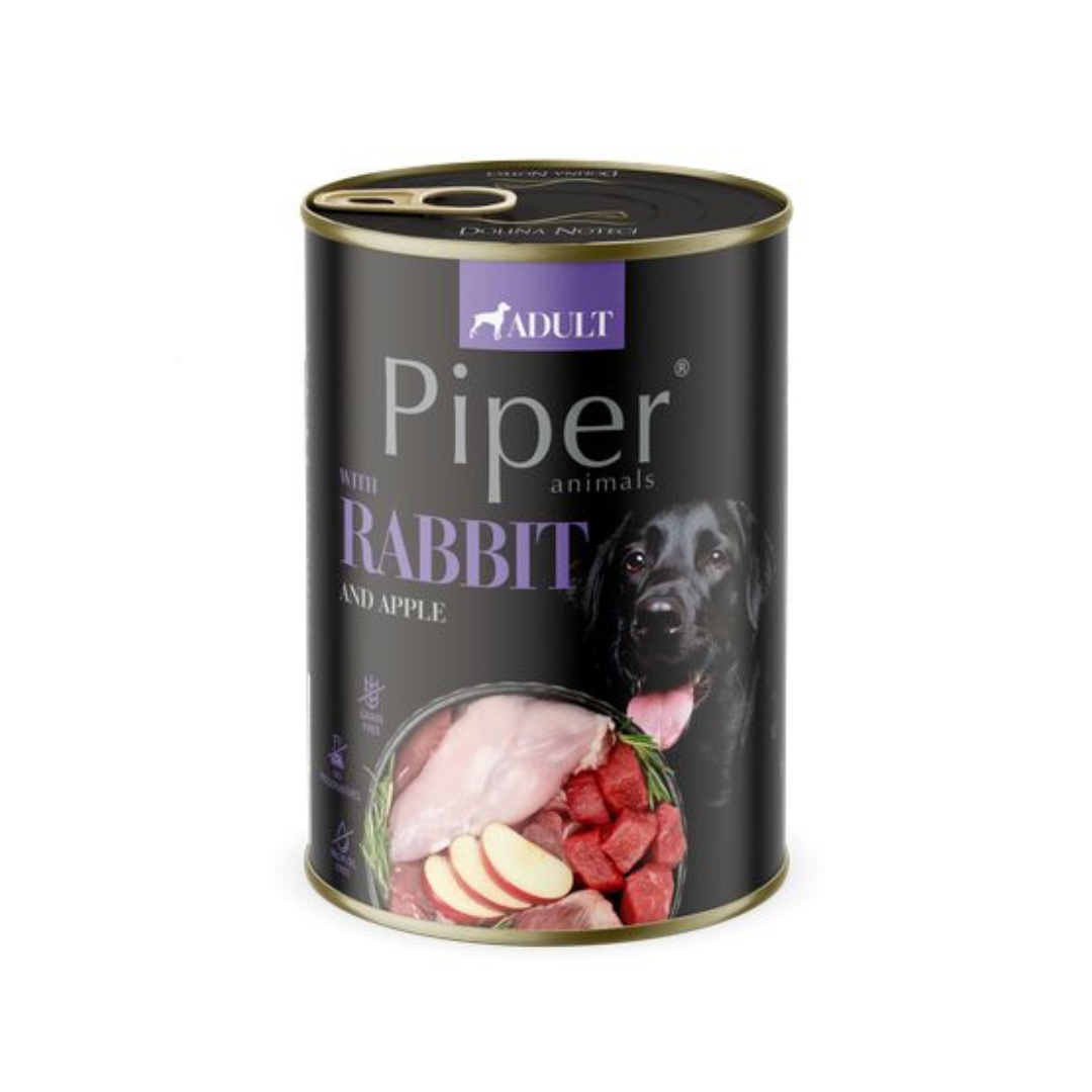 Piper Adult – králik je kompletné krmivo pre dospelých psov všetkých plemien. Zloženie krmiva bolo zostavené tak, aby sa zabezpečila prítomnosť vysokokvalitných živín, ktoré zaručujú správne fungovanie všetkých metabolických procesov. Králik je cenným zdrojom zinku, minerálu, ktorý hrá dôležitú úlohu pri stimulácii obranných funkcií tela. Je tiež zložkou ovplyvňujúcou antioxidačné vlastnosti telových tekutín a hrá dôležitú úlohu pri regulácii funkcie kože.