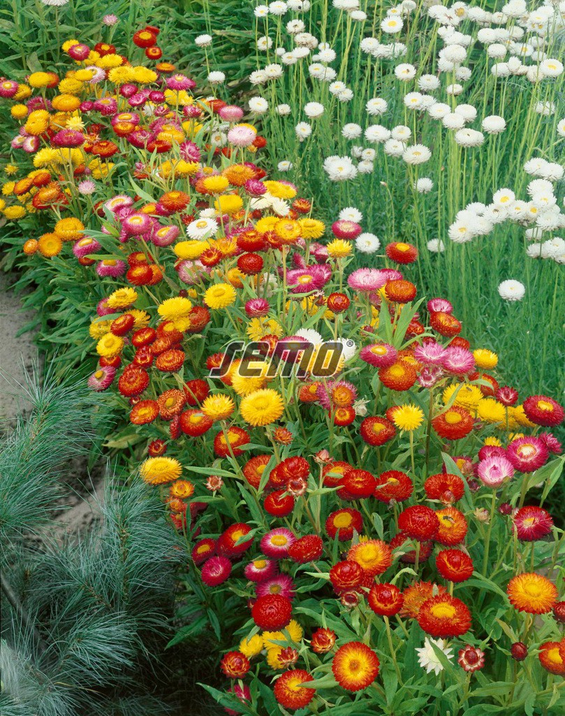 Nízka odroda tradičné slamienky s rastlinami v zmesi farieb. Vhodná na letničkové záhony aj na sušenie samostatných kvetov.