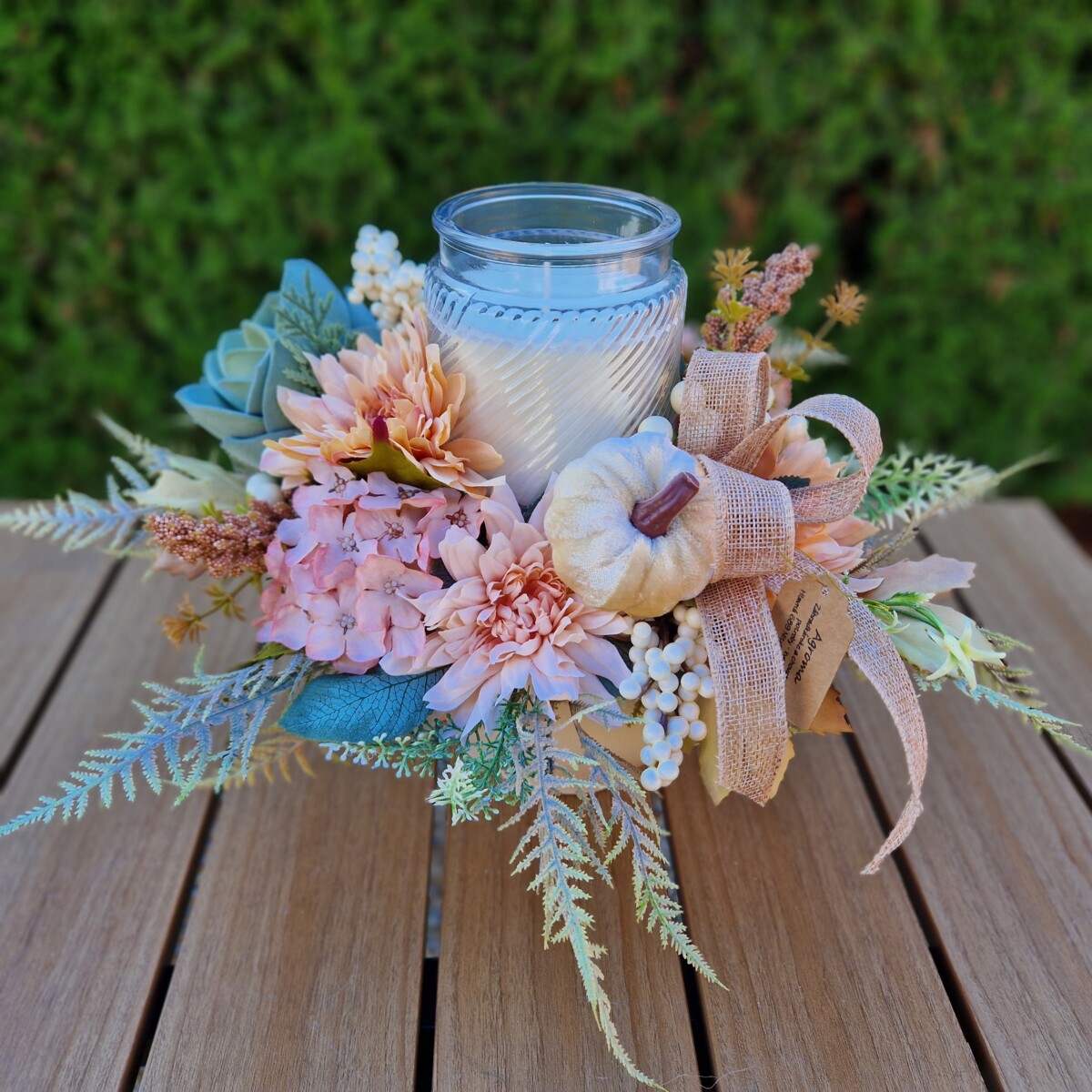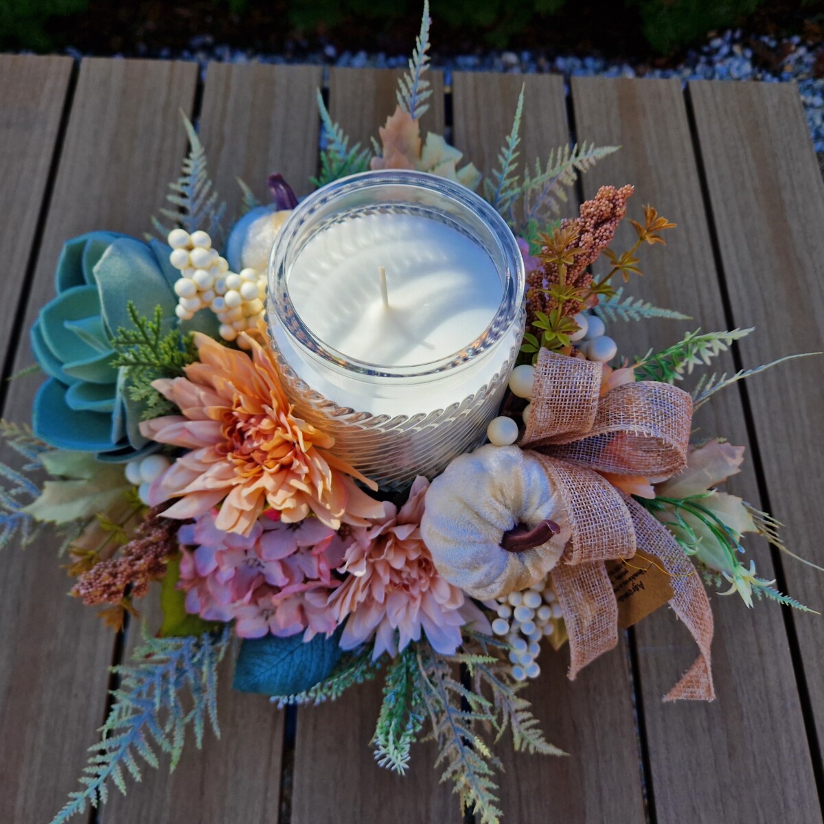 Svietnik v jesenných tonoch s voňavou sviečkou 40x26x29 cm